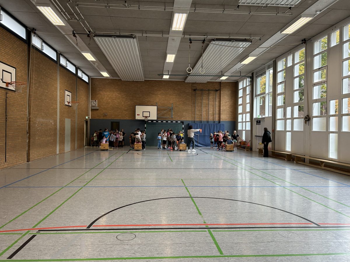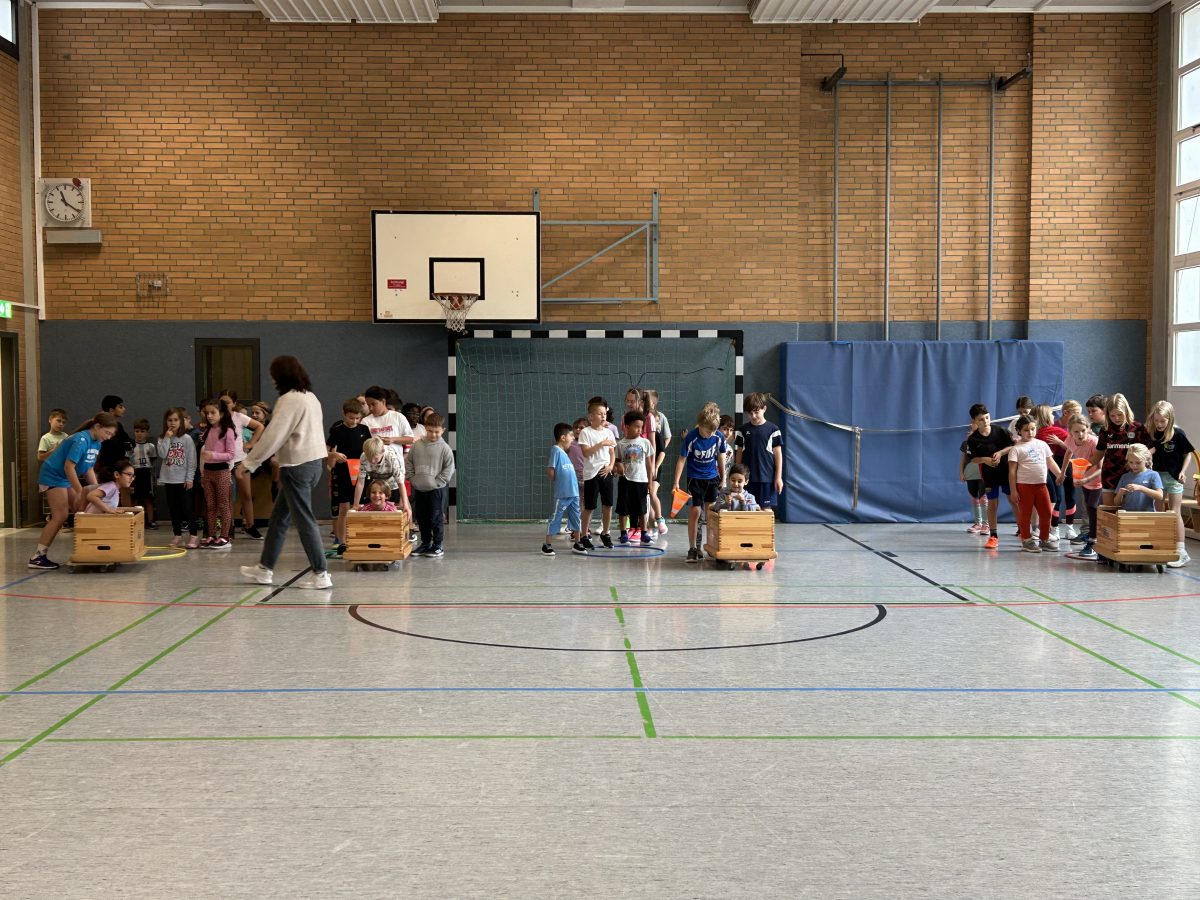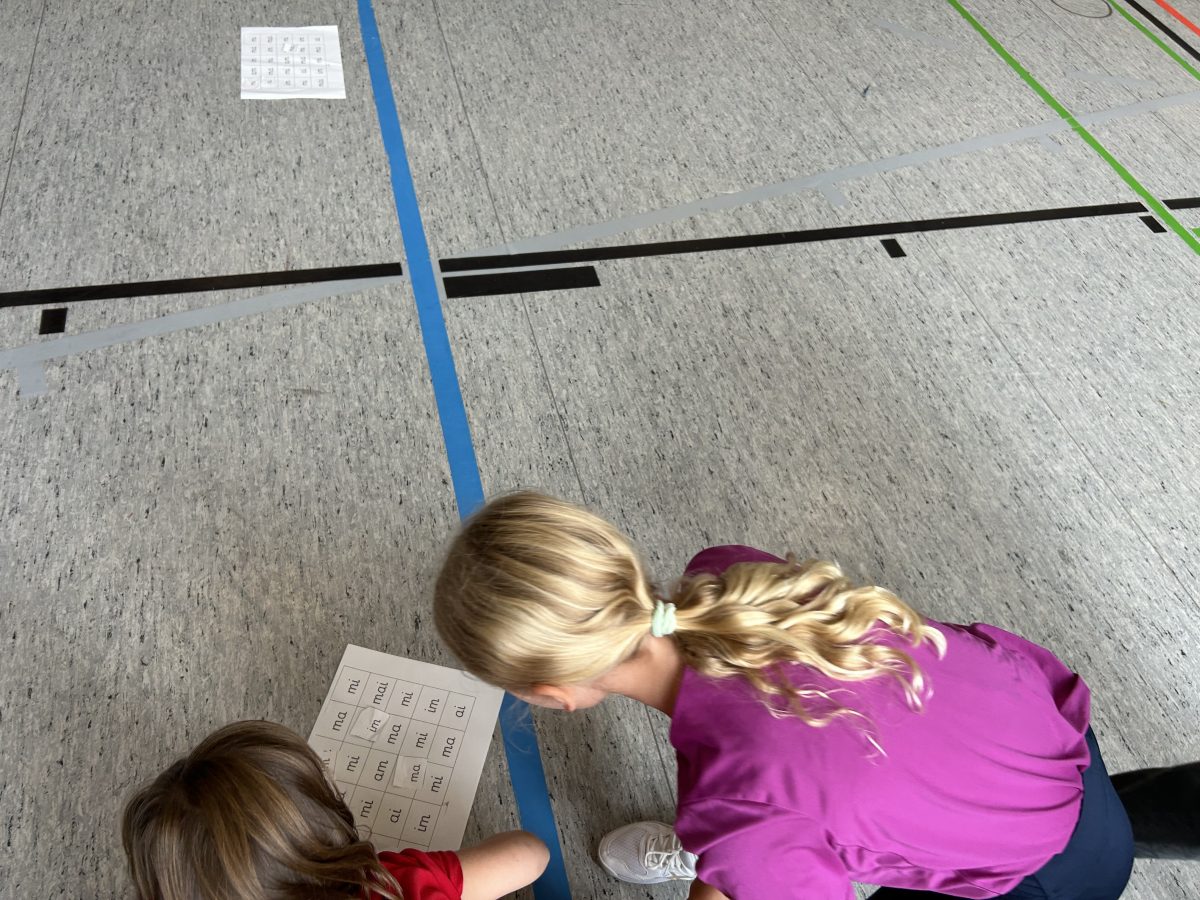 13. Oktober 2025Die Luchse traten sich mit ihren Paten, den Füchsen, in der Turnhalle – und dabei ging’s rund! Lesen und Sport gleichzeitig? Kein Problem! Die Viertklässler gaben alles: Auf Rollbrettern schoben sie die Erstklässler durch die ganze Sporthalle, bis zum Leseteppich. Dort mussten schnell die passenden Lesekarten verteilt werden – gar nicht so einfach! Wer zuerst alle Karten richtig gelegt hatte, durfte jubeln. Am Ende waren alle Sieger, denn es gabe jede Menge Spaß, Bewegung und tolle Teamarbeit!