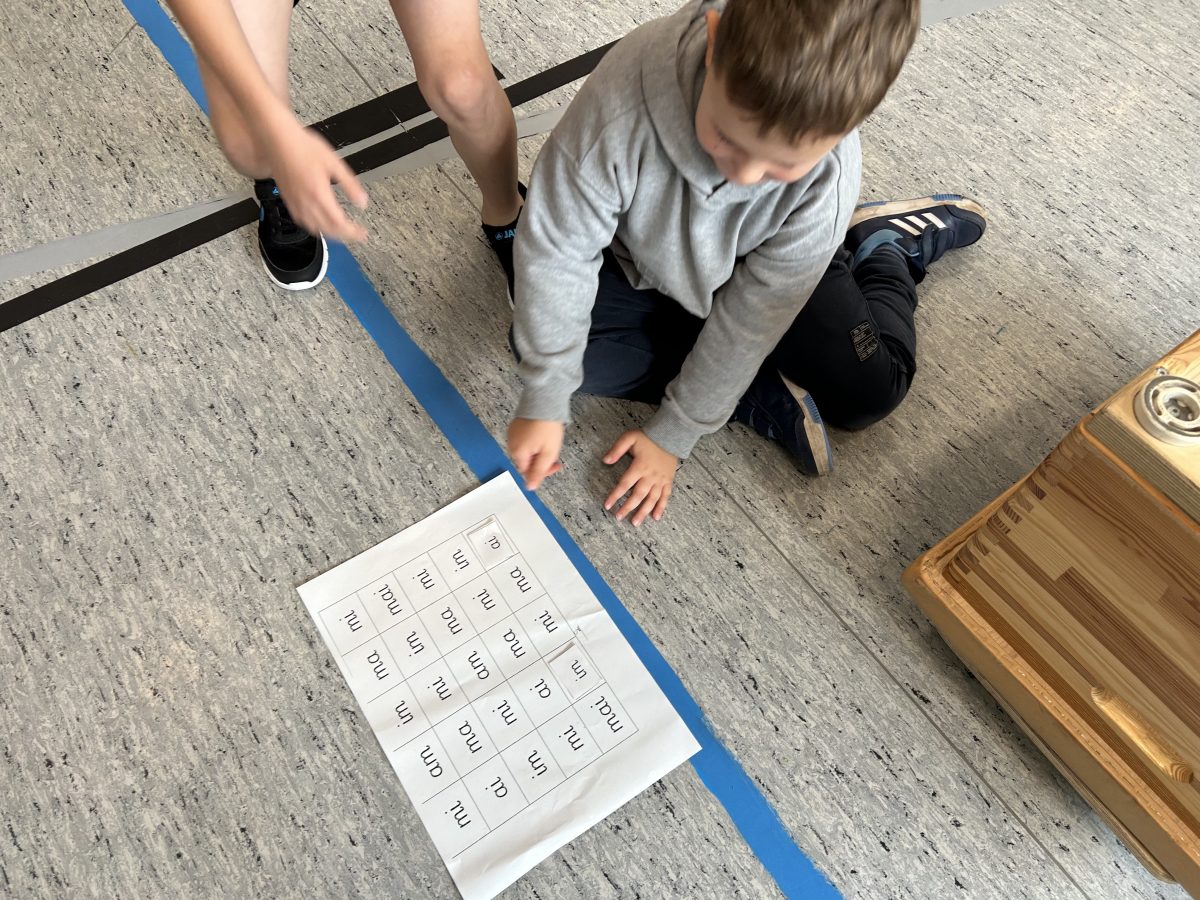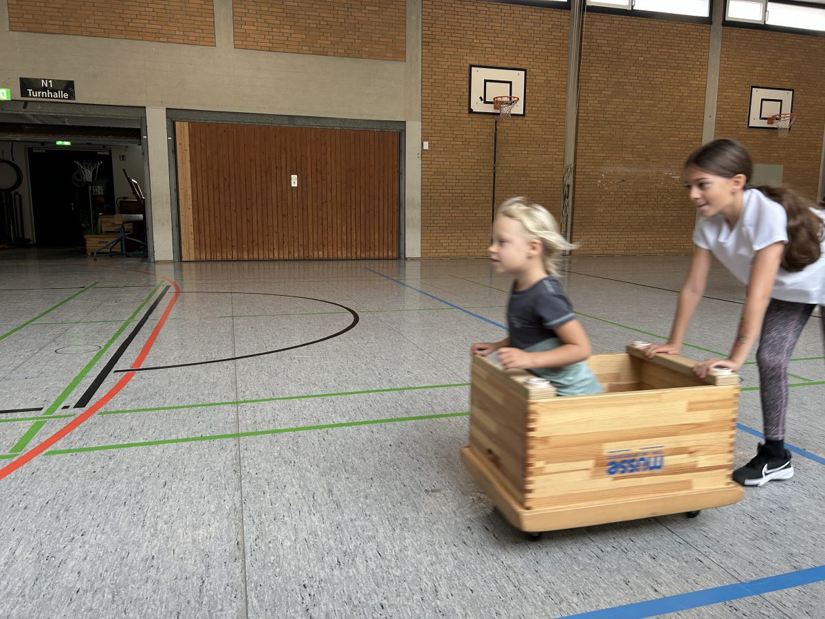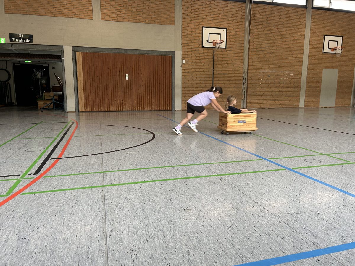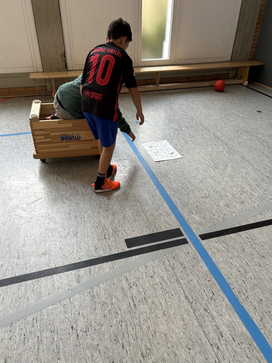 13. Oktober 2025Die Luchse traten sich mit ihren Paten, den Füchsen, in der Turnhalle – und dabei ging’s rund! Lesen und Sport gleichzeitig? Kein Problem! Die Viertklässler gaben alles: Auf Rollbrettern schoben sie die Erstklässler durch die ganze Sporthalle, bis zum Leseteppich. Dort mussten schnell die passenden Lesekarten verteilt werden – gar nicht so einfach! Wer zuerst alle Karten richtig gelegt hatte, durfte jubeln. Am Ende waren alle Sieger, denn es gabe jede Menge Spaß, Bewegung und tolle Teamarbeit!