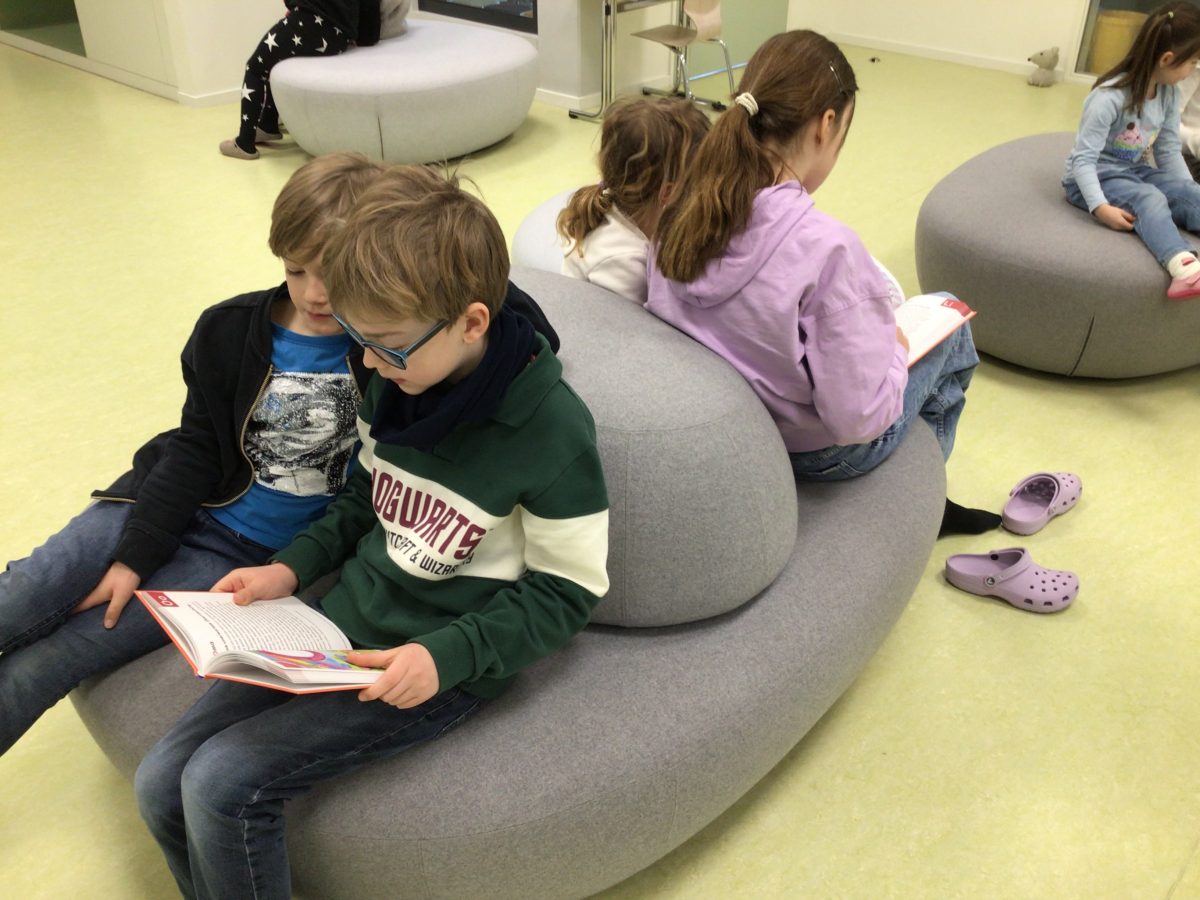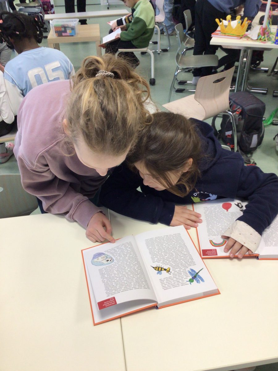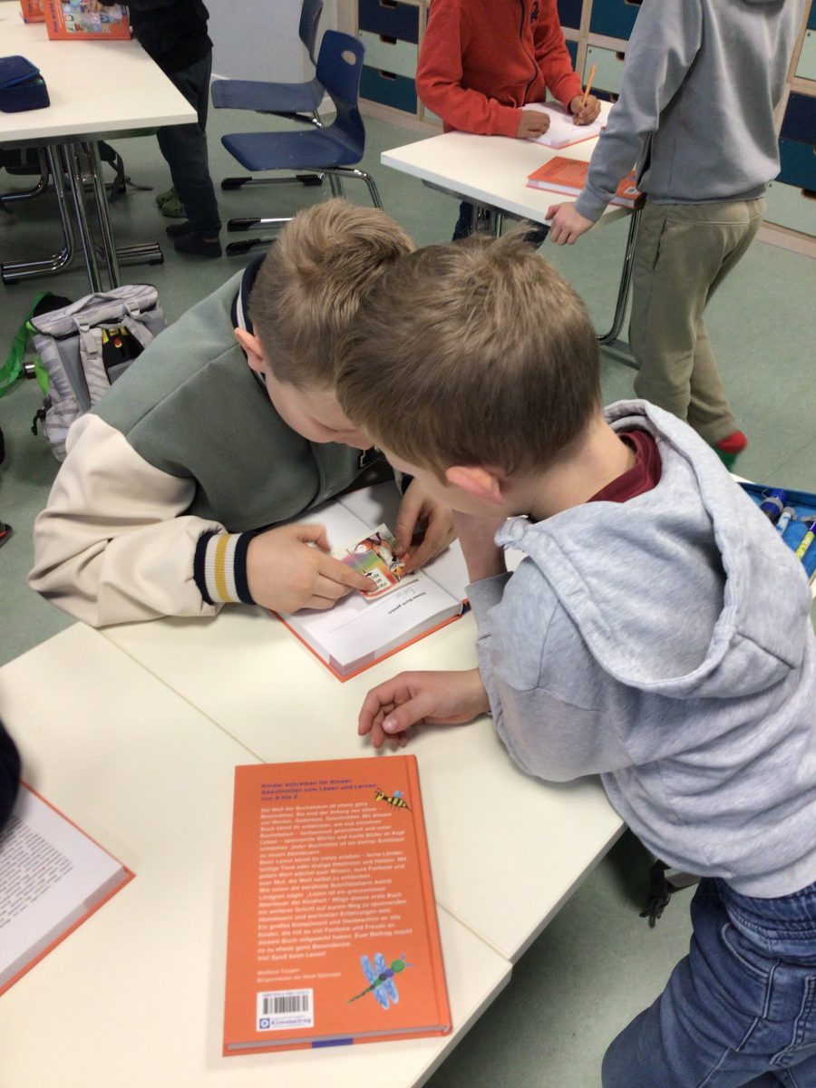 6. Februar 2026Heute fand an unserer Grundschule ein ganz besonderer Moment statt: Die Wölfe, Schildkröten und Luchse kamen mit ihren Patenklassen zusammen, um ihnen „Das erste Buch – Gütersloher Kinder schreiben und malen für Kinder“ zu überreichen. Im Anschluss lasen die Viertklässler ihren Patenkindern aus dem Buch vor. Gespannt hörten die Erstklässler zu und genossen die Zeit mit den „Großen“. So wurde nicht nur die Lesefreude gefördert, sondern auch das Miteinander weiter gestärkt. Für alle immer wieder ein schönes Erlebnis.
