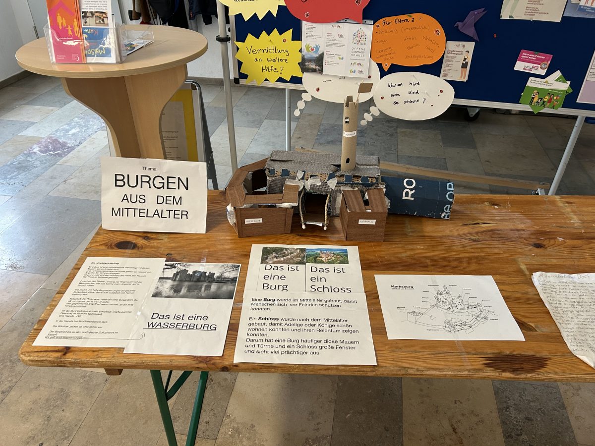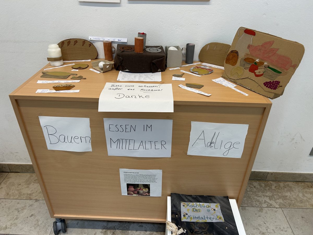 Mit viel Neugier sammelten gestalteten Plakate, bauten Modelle und bereiteten kleine Vorträge vor. Aus all diesen Ergebnissen entstand schließlich ein ganz besonderes Projekt: Die Klasse verwandelte ihren Klassenraum in ein eigenes „Mittelaltermuseum“.