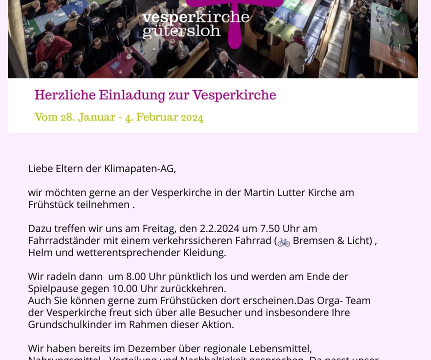 Liebe Eltern,wir freuen uns alle auf die Weihnachtsferien und haben noch folgende Informationen für Sie:Der letzte Schultag ist Mittwoch, 20.12.2023. Alle Kinder kommen um 8.00 Uhr […]